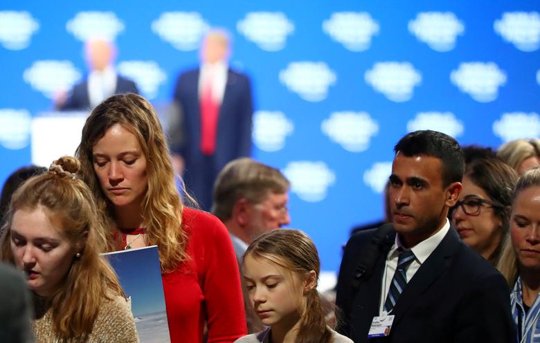"گرتا تونبرگ" فعال محیط زیست نوجوان سوئدی پس از پایان سخنرانی ترامپ در حاشیه اجلاس مجمع جهانی اقتصاد در داووس سوییس در حال ترک سالن است