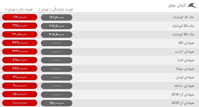 محصولات کرمانموتور امروز با ثبات قیمت به استقبال مشتریانشان آمده است.محصولات مدیران خودرو این روزها تغییری در قیمتهایشان ایجاد نمیکنند. قیمت این محصولات در بازار تقریبا نزدیک به نرخ مصوب کارخانه است.