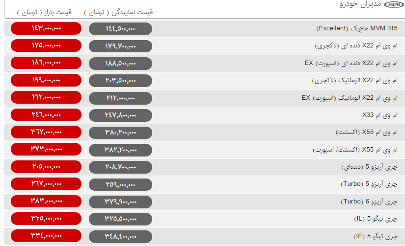 قیمت روز محصولات مدیران خودرو و کرمان موتور امروز چهارشنبه دوم بهمن ۹۸ مطابق جدول زیر است: