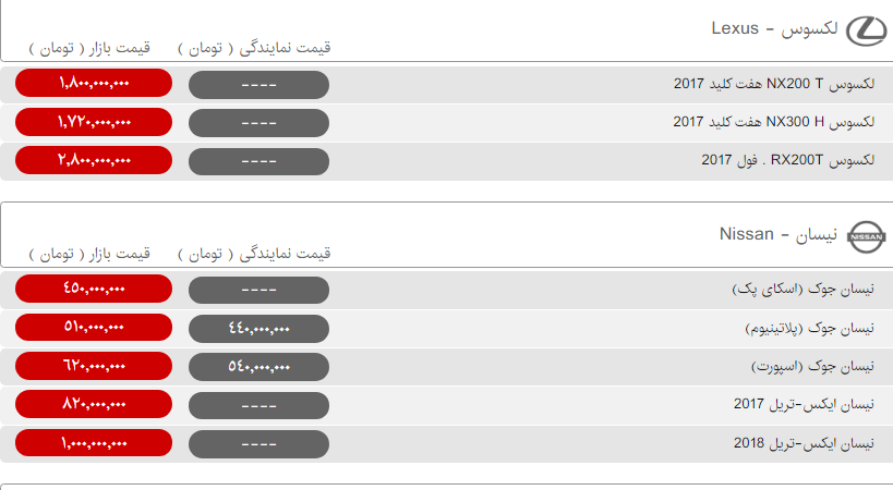 | لکسوس NX300 H هفت کلید 2017 | ۱,۷۰۰,۰۰۰,۰۰۰ |