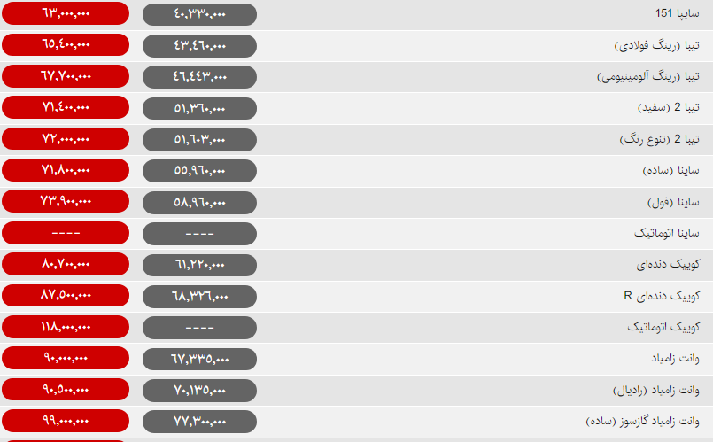 قیمت روز خودرو های داخلی ۶ بهمن؛ سونامی افزایش قیمت در بازار خودرو