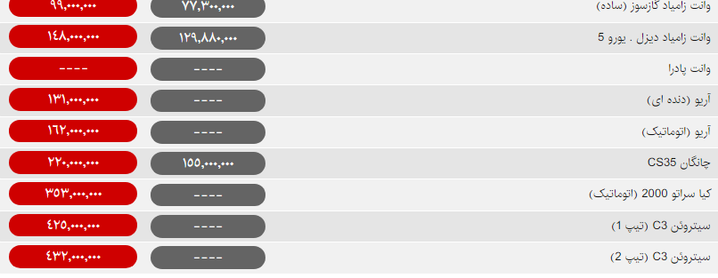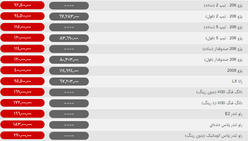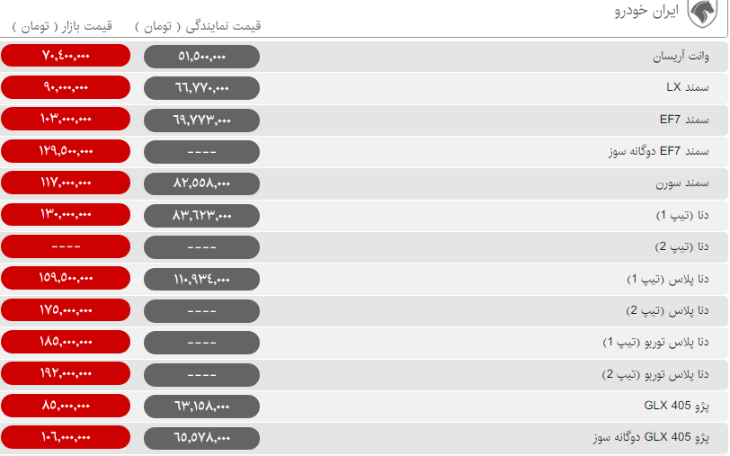 خودروها در مسابقه گرانی از هم سبقت میگیرند. امروز ایران خودروییها تا چهار میلیون تومان گران شدهاند و خودروهای سایپا تا ۷۰۰ هزار تومان افزایش قیمت را در کارنامه خود ثبت کردهاند. در چنین روزی پراید صندوقدار در بازار با نرخ ۵۴ میلیون و ۷۰۰ هزار تومان فروخته میشود و پژو ۲۰۶ صندوقدار، ۱۲۰ میلیون تومان قیمتدارد