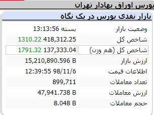 شدت رشد بورس کاهش یافت /افزایش 1310 واحدی شاخص کل بورس تهران
