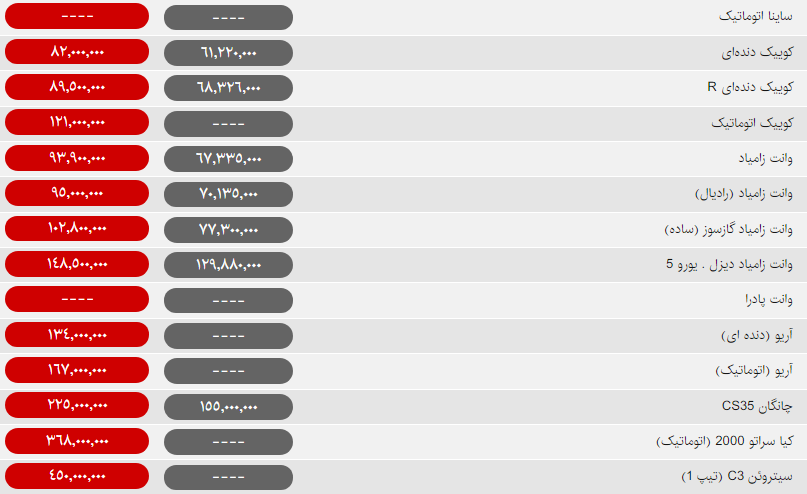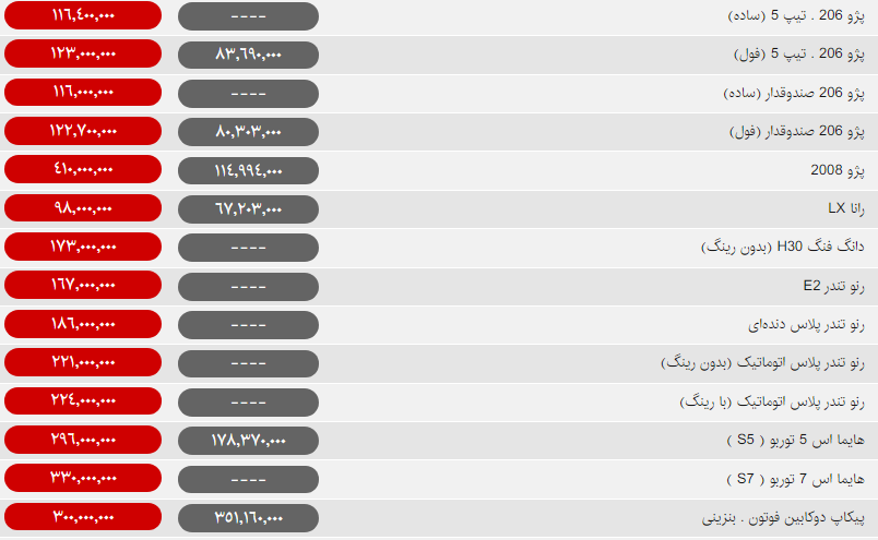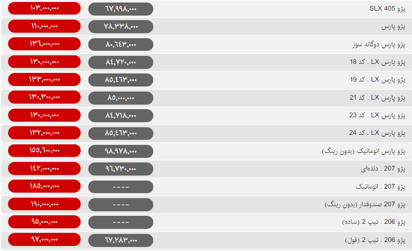 قیمت روز خودرو های داخلی در ۱۰ بهمن/ پژو پارس 110/000/000 تومان شد