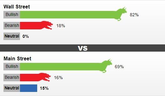 در نظرسنجی این هفته 17 تحلیلگر وال استریت شرکت کردند که 14 نفر معادل 82 درصد به افزایش قیمت طلا رای دادند. 3 نفر معادل 18 درصد نیز گفتند قیمت طلا کاهش خواهد یافت.