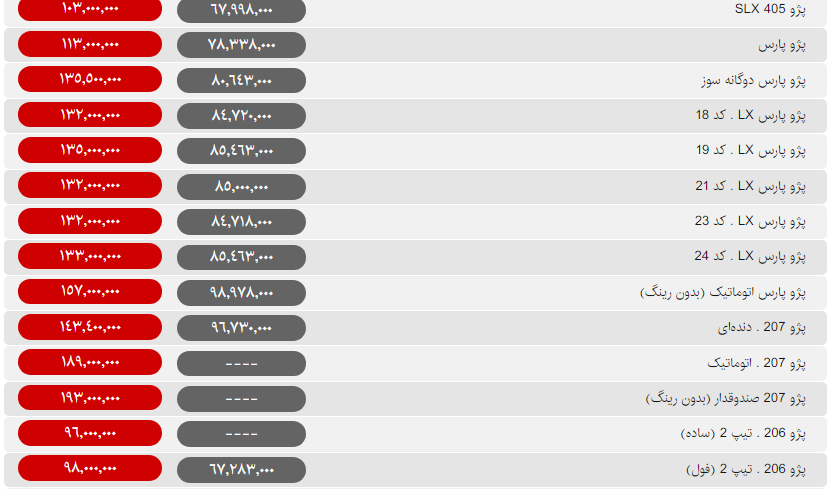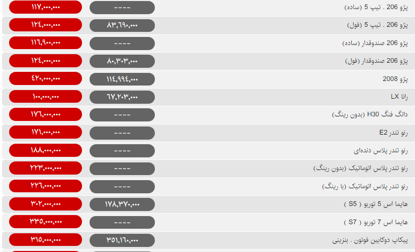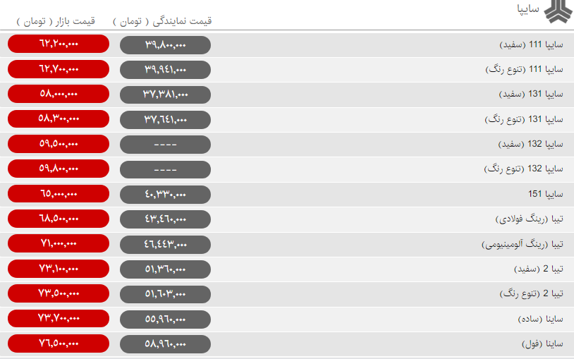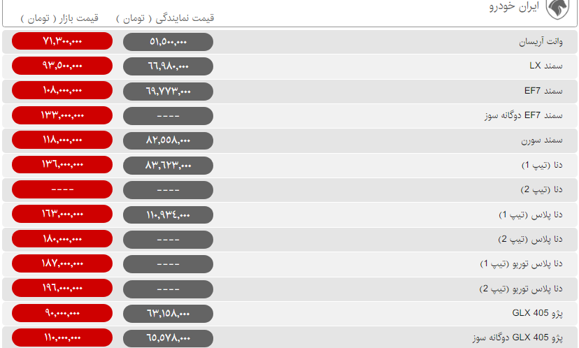 قیمت روز محصولات ایران خودرو و سایپا امروز شنبه ۱۲ بهمن ۹۸ مطابق جداول زیر است: