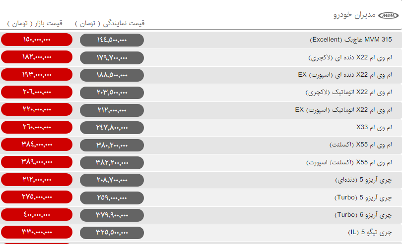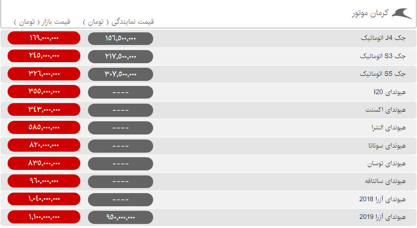 محصولات کرمان موتور دوباره با افزایش قیمت به استقبال مشتریانشان آمدهاند. طوری که این بار محصولات کرمان موتور در عرض یک روز تا هشت میلیون تومان گرانی را در کارنامه خود ثبت کردهاند.همچنین محصولات مدیران خودرو به روند گرانی که در تعطیلات آخر هفته گذشته در پیش گرفته بودند، ادامه میدهند. طوری که امروز هم شاهد افزایش قیمت محصولات این شرکت هستیم