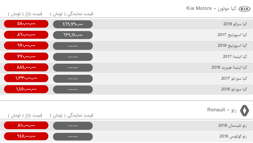 جدیدترین قیمت خودرو های وارداتی در بازار 13 بهمن 98/ کیا اسپورتیج 2018 به قیمت 970/000/000 تومان رسید