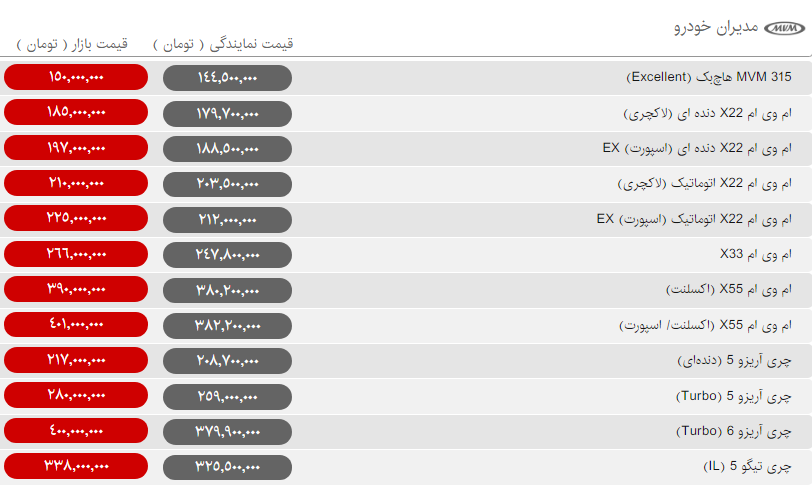 محصولات کرمان موتور و مدیران خودرو بر مدار گرانی / ام وی ام X55 (اکسلنت) 390/000/000 تومان شد