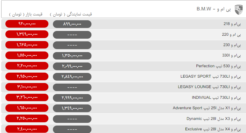 | مدل خودرو | قیمت (تومان) |