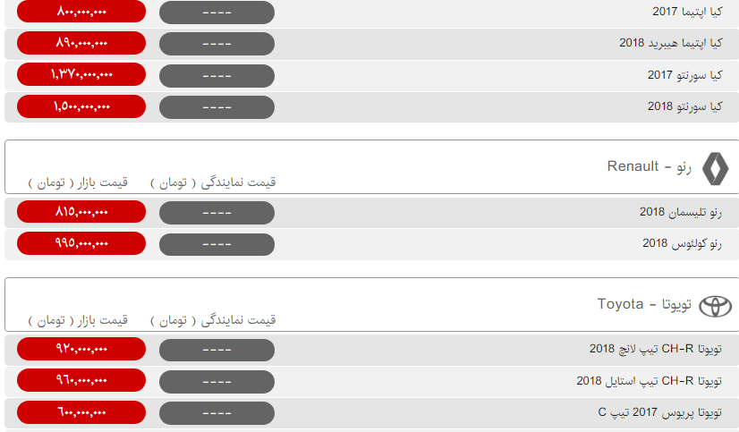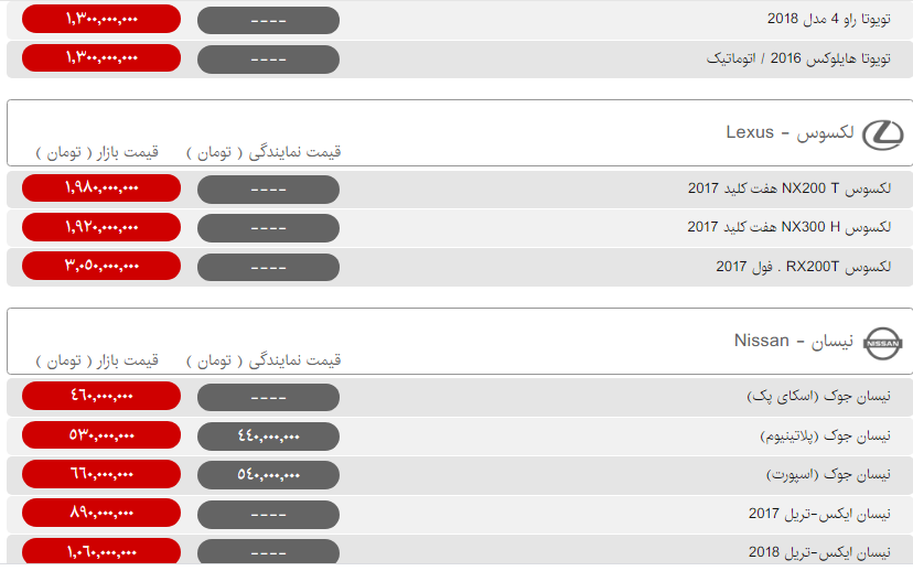 | تویوتا راو ۴ مدل ۲۰۱۸ (الفطیم) | ۱,۲۰۰,۰۰۰,۰۰۰ |