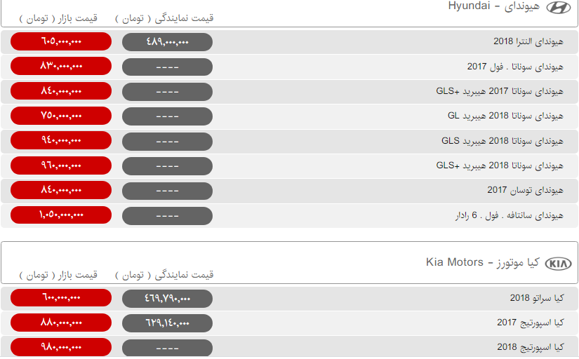 | هیوندای سوناتا ۲۰۱۸ هیبرید +GLS | ۹۰۰,۰۰۰,۰۰۰ |