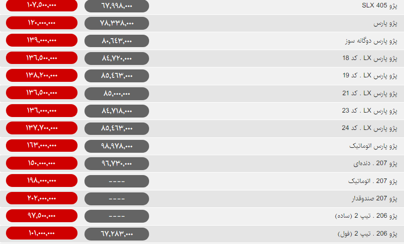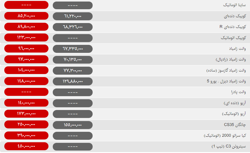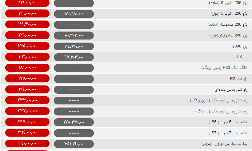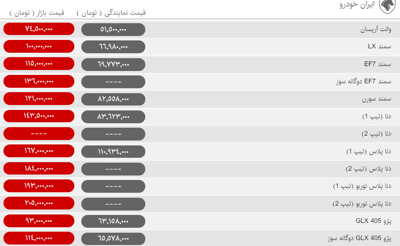 به گزارش سایت طلا قیمت خودروهای سایپا و ایران خودرو در بازار امروز 1398/11/17 بهشرح جداول زیر است: