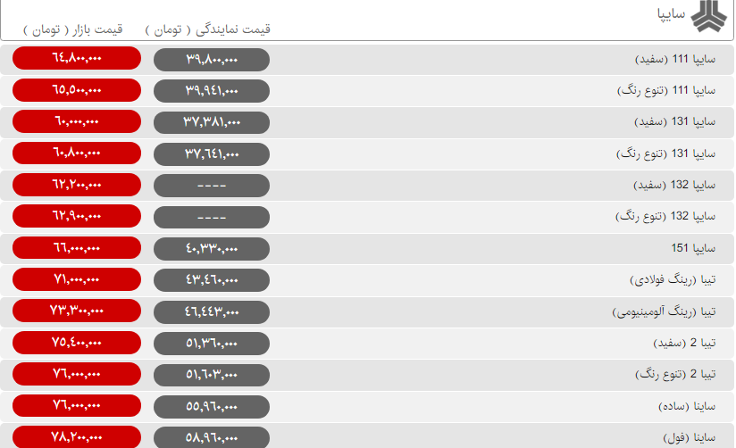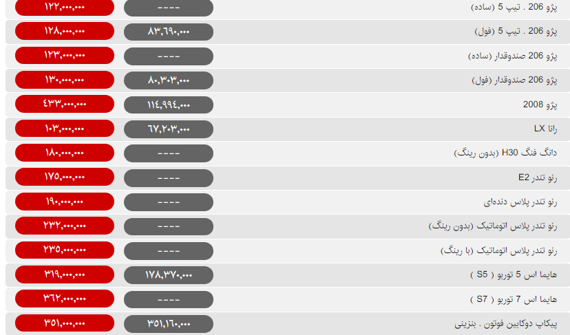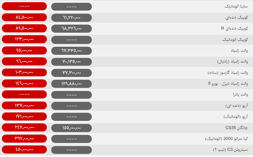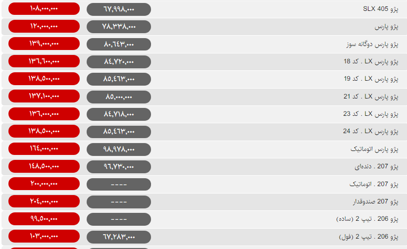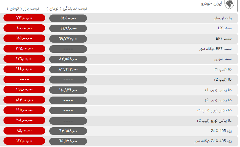 قیمت روز محصولات ایران خودرو و سایپا امروز یکشنبه ۲۰ بهمن ۹۸ به شرح جداول زیر است