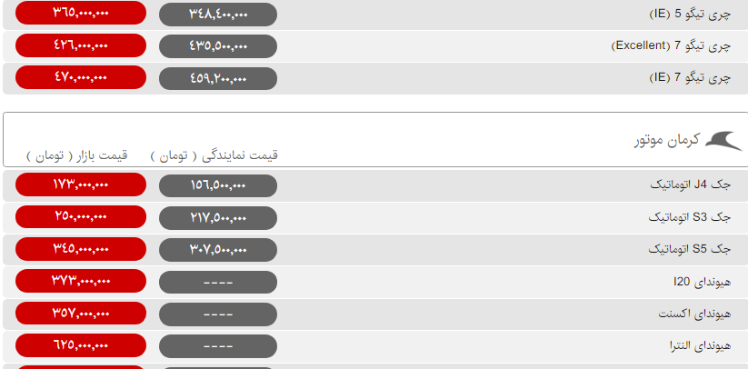 محصولات کرمان موتور بالاخره افزایش قیمت را کنار گذاشتند و امروز بعد از دو هفته گرانی بدون توقف، با ثبات قیمت به استقبال مشتریانشان آمدهاند.از طرفی محصولات مدیران خودرو به روند گرانی که از دو هفته قبل در پیش گرفته بودند، ادامه میدهند و کاری به کار دیگر خودروهای موجود در بازار ندارند. طوری که امروز شاهد افزایش قیمت محصولات مدیران خودرو تا هفت میلیون تومان هستیم