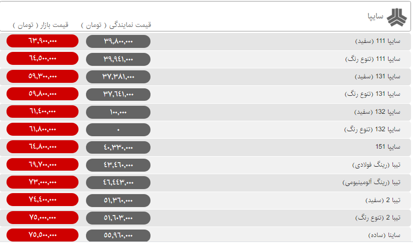 به گزارش سایت طلا آخرین قیمت انواع محصولات سایپا و ایرانخودرو در کارخانه و بازار در روز پنجشنبه ۲۴ بهمن ماه را در جدولهای زیر میتوانید مشاهده کنید.