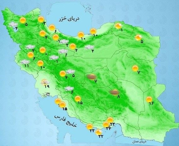 فردا به تدریج سامانه بارشی از شمال غرب وارد کشور شده که در دامنههای زاگرس مرکزی واقع در غرب و شمال غرب بارش برف و در ارتفاعات البرز در استانهای قزوین،البرز و دامنههای زاگرس مرکزی در جنوب غرب بارش پراکنده روی میدهد.