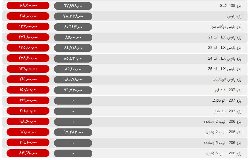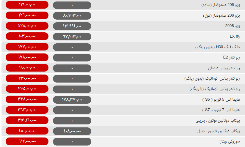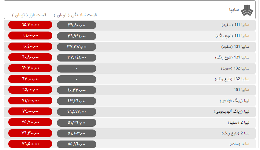 قیمت روز محصولات سایپا و ایران خودرو امروز سهشنبه ۲۹ بهمن ۹۸ مطابق جداول زیر است: