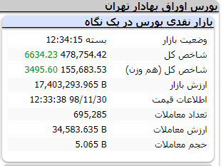 به گزارش سایت طلا ، شاخص کل بورس اوراق بهادار تهران در پایان معاملات امروز (چهارشنبه آخرین روز بهمن 98) با جهش 6 هزار و 634 واحدی به رقم 478 هزار و 754 واحد رسید.