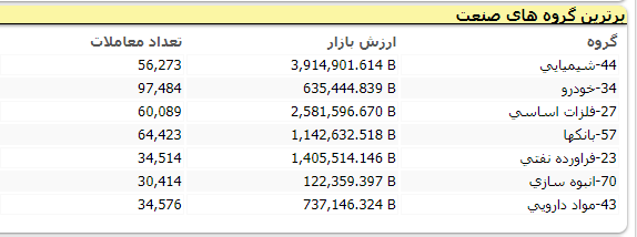 امروز نمادهای بانک تجارت، بانک ملت، سایپا، ایران خودرو، پالایش نفت اصفهان، پارس خودرو و دادهگستر عصر نوین از نمادهای پربیننده بودهاند.