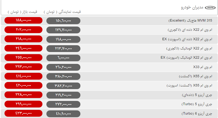 به گزارش سایت طلا قیمت روز محصولات مدیران خودرو و کرمان موتور امروز شنبه سوم اسفند ۹۸ مطابق جداول زیر است: