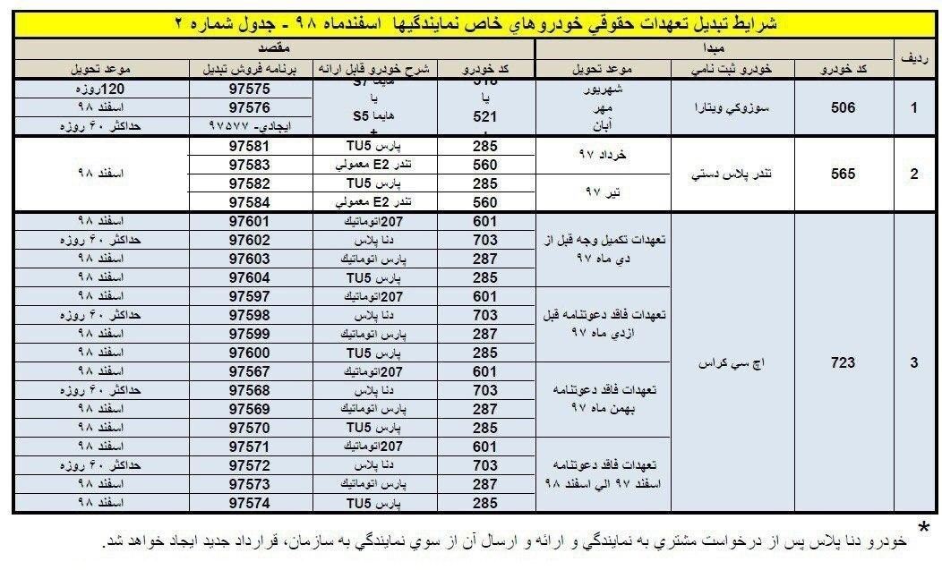 به گزارش سایت طلا ، به دنبال درخواست برخی از مشتریان و بروز تاخیر طولانی در تحویل برخی از خودروها ، امکان تبدیل برخی از محصولات ایران خودرو به سایر خودروها تا پایان اسفندماه فراهم شد.