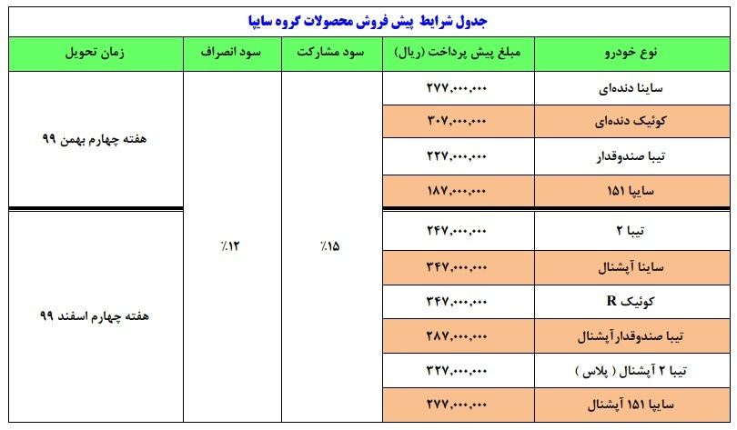 شرکت سایپا در نظر دارد فردا سهشنبه ۶ اسفند ماه طرح پیش فروش محصولات خود را به صورت محدود اجرا کند.