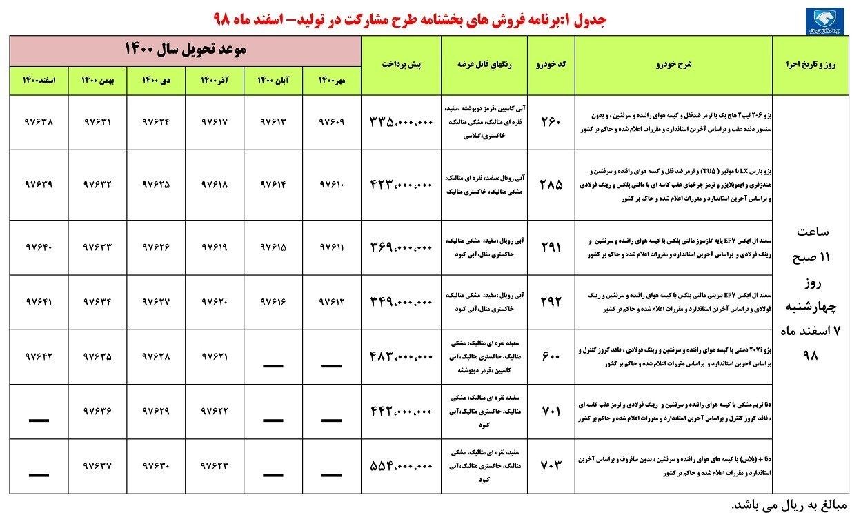 پیش فروش ۷ محصول شرکت ایران خودرو در ساعت ۱۱ صبح روز چهارشنبه مورخ ۹۸/۱۲/۰۷ آغاز خواهد شد.