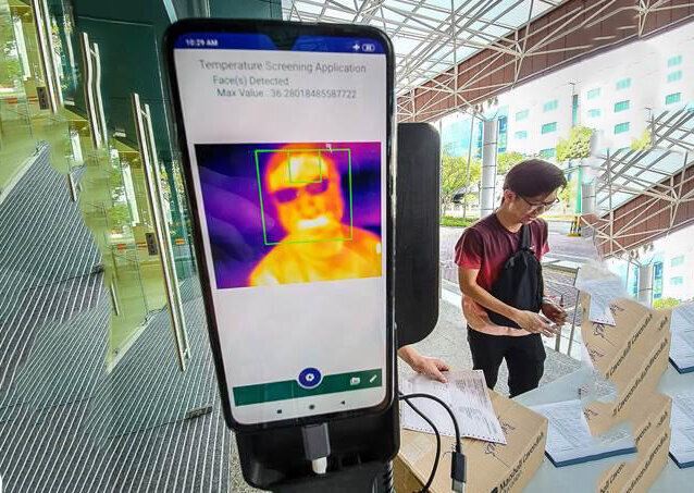 به تازگی، سیستمهای جامع اطلاعات سلامت سنگاپور (IHIS) و شرکتی به نام "کرونی کر" (KroniKare) یک سیستم جدید غربالگری برای سنجش تب مسافران توسعه دادهاند که این سیستم مجهز به یک تلفن هوشمند و دوربینهای حرارتی و لیزری است و توسط آنها قادر به اندازهگیری دمای بدن افراد است. این فناوری میتواند سرعت عبور مسافران در مراکز و مکانهای مختلف را افزایش دهد و امکان انتقال ویروس را کاهش دهد.