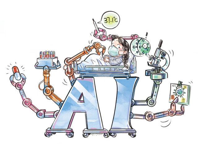 در تلاش برای به حداقل رساندن تماس بین افراد، دستگاههای مجهز به فناوری هوش مصنوعی که دارای تجهیزاتی از جمله چند دماسنج و دوربین هستند، علائم حیاتی بیماران را اندازه گیری میکنند و به پزشکان کمک میکنند تا افراد مبتلا به این ویروس را سریعتر شناسایی کنند. علاوه بر شناسایی سریعتر، این دستگاهها یک مزیت دیگر نیز دارند و آن این است که سبب میشوند پزشکان ارتباط مستقیم با بیماران مبتلا به کروناویروس نداشته باشند. این رباتها کارهای دیگری نیز انجام میدهند که میتوان به ضد عفونی کردن اتاقهای بیمارستان و حتی هواپیماها نیز اشاره کرد.