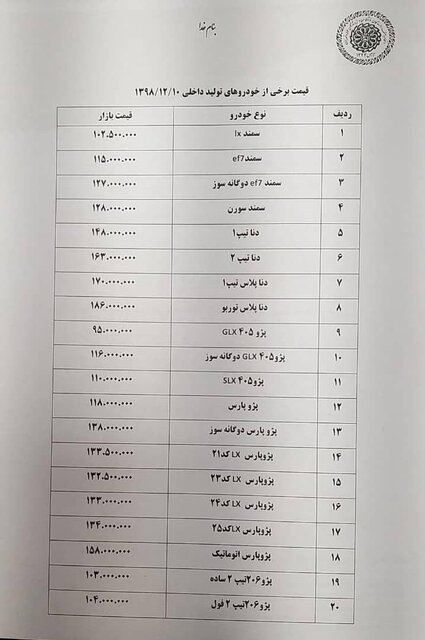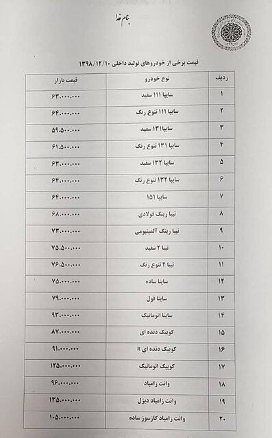 مرجع اعلام قیمتها، اتحادیه نمایشگاهداران و فروشندگان خودرو تهران است.