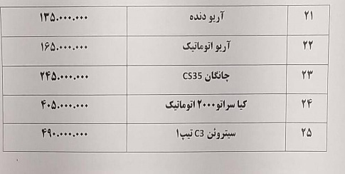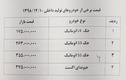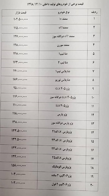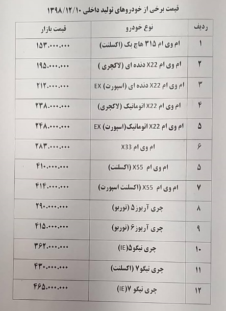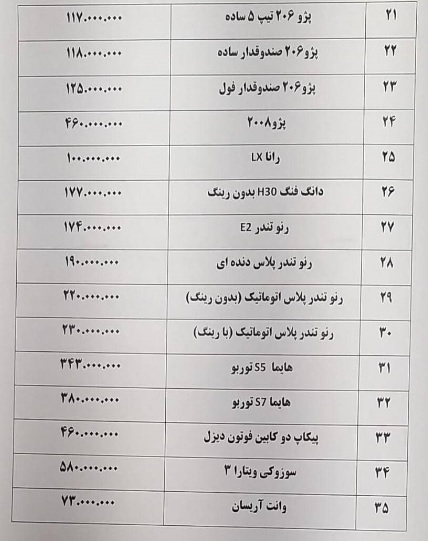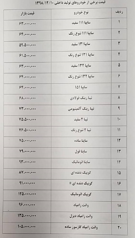 قیمت خودروها در بازار امروز به شرح زیر است: