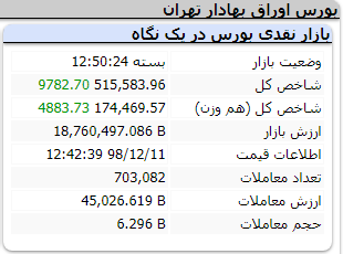 شاخص کل بورس اوراق بهادار تهران که روز گذشته به دلیل ترس حقیقیها از بیماری کرونا و فروش سهام به شدت افت کرده بود، امروز درصدد جبران برآمده و با جهش 9782 واحد به رقم 515 هزار و 583 واحد رسید.