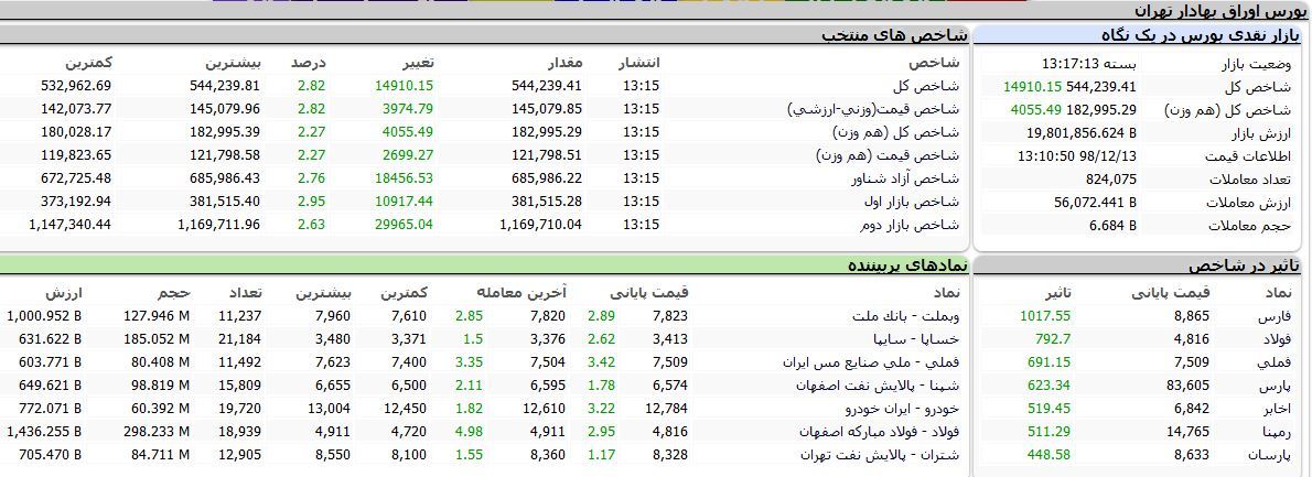ارزش روز بازار در بورس اوراق بهادار به بیش از 1980 تریلیون تومان رسید.