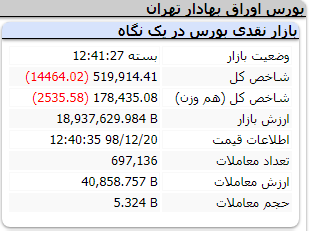 به گزارش سایت طلا ، شاخصکل بورس اوراق بهادار تهران امروز سه شنبه هم مانند روز گذشته رو به کاهش بوده و شاخص کل در پایان معاملات 14 هزار و 531 واحد افت کرده و به رقم 519 هزار و 87 واحد رسید.