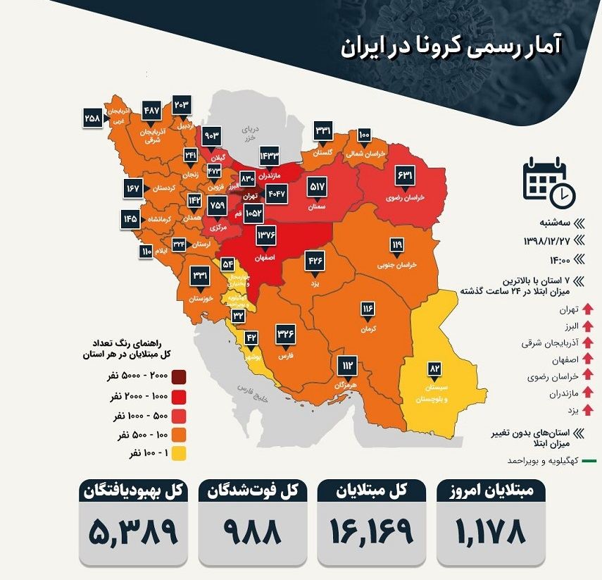 آمار جدید کرونا در ایران؛ شمار جانباختگان به ۱۰۰۰ نفر رسید