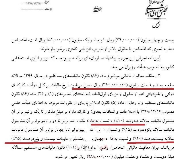 بررسی قانون بودجه ۱۳۹۹ نشان می‌دهد، ۴ طبقه مختلف حقوق برای معافیت و دریافت مالیات از ۱۰ تا ۲۵ درصد لحاظ شده است.