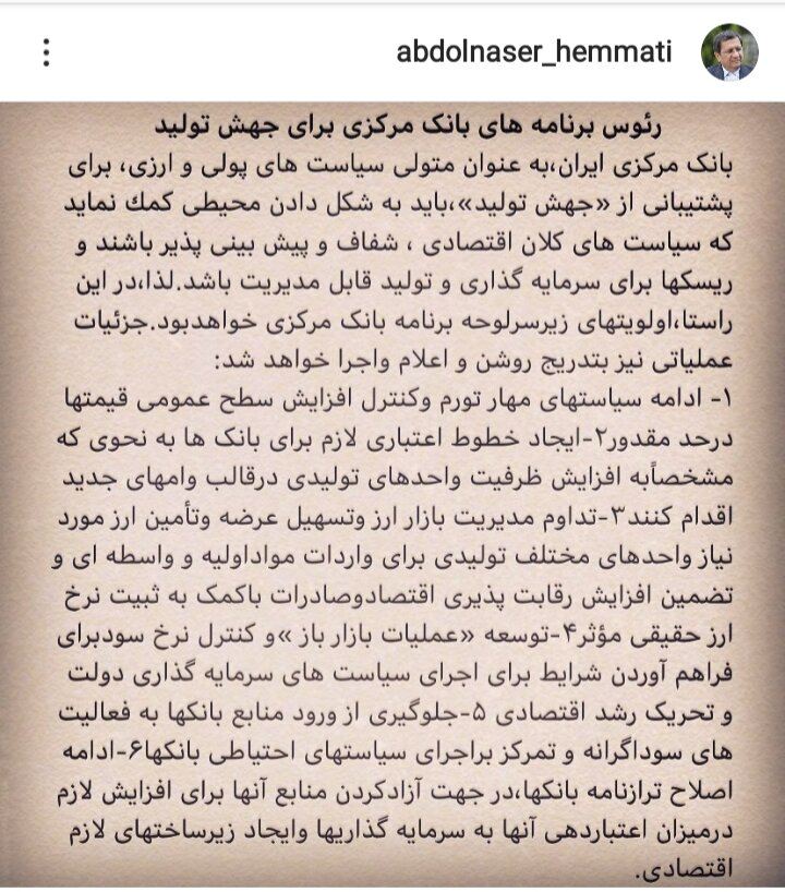 رئیس کل بانک مرکزی جمهوری اسلامی ایران در یادداشتی رئوس برنامههای بانک مرکزی برای جهش تولید را اعلام کرد.