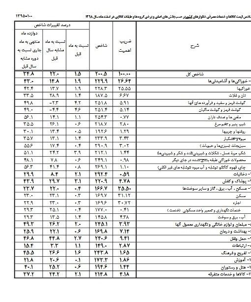 به این ترتیب، تورم سالانه گوشت قرمز و ماکیان 49 درصد و شیر و پنیر 35 درصد بوده است.تورم یک ساله میوه و خشکبار نزدیک به 36 درصد برآورد شده است.