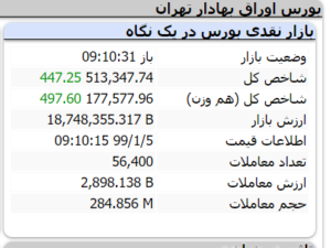 همچنین در این بازار یک میلیارد و ۳۶۵ میلیون برگه سهم به ارزش بیش از ۱۴ هزار و ۹۴۴ میلیارد ریال داد و ستد شد.