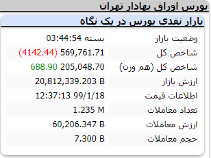 همچنین شاخص کل با معیار هموزن 688 واحد رشد کرده و به رقم 205 هزار و 48 واحد رسید.