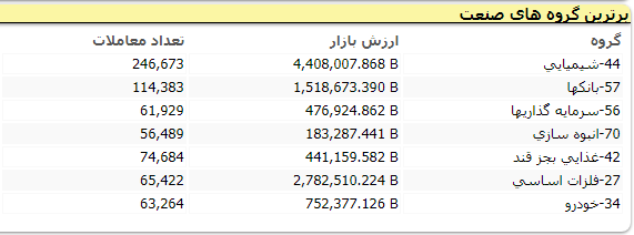 امروز نمادهای بانک ملت، بانک تجارت، بانک اقتصاد نوین، گلوکزان، پالایش نفت اصفهان، سالمین، ماشینسازی اراک، فولاد مبارکه و کشتیرانی جمهوری اسلامی همگی از نمادهای پربیننده و مورد اقبال فعالان بودند.