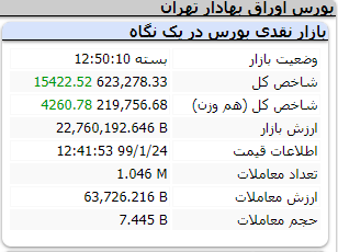 معاملات امروز بازار سرمایه همانند روزهای گذشته با چراغ سبز به پایان رسید و شاخص کل این بازار بیش از ۱۵ هزار واحد صعود کرد.شاخص کل بازار سرمایه با ۱۵ هزار و ۴۲۲ واحد رشد به رقم ۶۲۳ هزار و ۲۷۸ واحد رسید. شاخص کل با معیار هم وزن نیز صعودی بود و با ۴۲۶۰ واحد صعود در رقم ۲۱۹ هزار و ۷۵۶ واحد ایستاد. معامله گران بورس یک میلیون معامله انجام دادند که ۶۳ هزار و ۷۲۶ میلیارد ریال ارزش داشت.وزیر اقتصاد از تعلیق تصمیمات اخیر هیات مدیره سازمان بورس و اوراق بهادار بر اساس جمعبندی اعضای شورای عالی بورس خبر داد