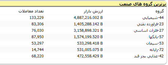 همچنین نمادهای پربیننده مورد علاقه معاملهگران شامل بانک ملت، بانک تجارت، به قیمت 940 ریال، پالایش نفت اصفهان، فولاد مبارکه، سرمایهگذاری خوارزمی، گلوکوزان،توسعه ساختمان و ملی مس ایران بودند.
