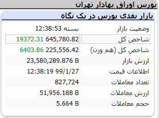 شاخص کل بازار سرمایه در آخرین روز معاملات در هفته جاری با ۱۹ هزار و ۳۷۲ واحد رشد رقم ۶۴۵ هزار و ۷۸۱ واحد را ثبت کرد. شاخص کل با معیار هم وزن نیز ۶۴۰۳ واحد صعود و رقم ۲۲۵ هزار و ۵۵۶ واحد را ثبت کرد. امروز ۸۱۷ هزار معامله به ارزش ۵۱ هزار و ۷۹۶ میلیارد ریال انجام شد.مدیرعامل بورس تهران گفت: با حضور 2 میلیون و 70 هزار نفر در عرضه اولیه 10 درصد سهام شستا در بورس، رکورد مشارکت شکسته شد .بزرگترین عرضه اولیه در بورس تهران مربوط به 10 درصد سهام شستا با کشف قیمت هر سهم 8600 ریال انجام شد.