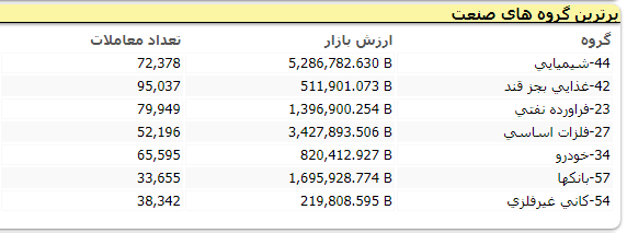 سهامی ذوب آهن اصفهان، گروه سرمایه گذاری میراث فرهنگی، گروه صنایع کاغذ پارس، سیمان لار سبزوار، س. توسعه و عمران استان کرمان، صنایع ماشین های اداری ایران و شیر پاستوریزه پگاه فارس نمادهای پربیننده فرابورس بودند.