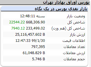 شاخص بازار اول بورس با افزایش 17 هزار و 205 واحد به رقم 470 هزار و 213 واحد رسید. شاخص بازار دوم بورس که معاملات بلوکی در آن انجام میشود با افزایش بیسابقه 42 هزار و 228 واحد به رقم یک میلیون 428 هزار و 862 واحد رسید.