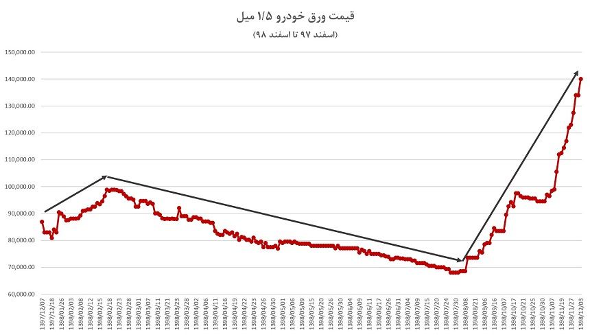 از طرفی اگر روند قیمت ورق خودرو را در نظر بگیریم، با توجه به شیب افزایش بیش از حد قیمت ورق در شش ماه گذشته، در سال جدید احتمال تعدیل رو به پایین و ثبات قیمت وجود دارد، از طرفی اعمال اثر کاهشی آن بر روی قیمت خودرو، به شرط تداوم در کاهش قیمت ورق نیز بعید نیست.