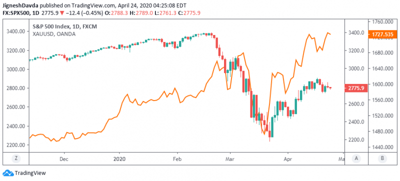 همین اتفاق یک بار دیگر افتاد؛ ما شاهد هستیم که شاخص S&P 500 و بهای طلا هر دو در اواخر مارس در یک مسیر حرکت کردند. تفاوت بزرگ در این دو اینجاست که طلا در هنگام تنظیم نوسانات، عملکرد فوق العاده ای دارد. و این در حالی است که شاخص سهام هنوز تلاش می کند خود را به سود ۲۲ درصدی برساند.