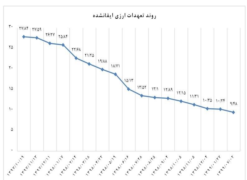 به گفته پناهی نمودار زیر به وضوح روند کاهشی درصد تعهدات ایفاء نشده را در طی دوره یادشده نشان میدهد